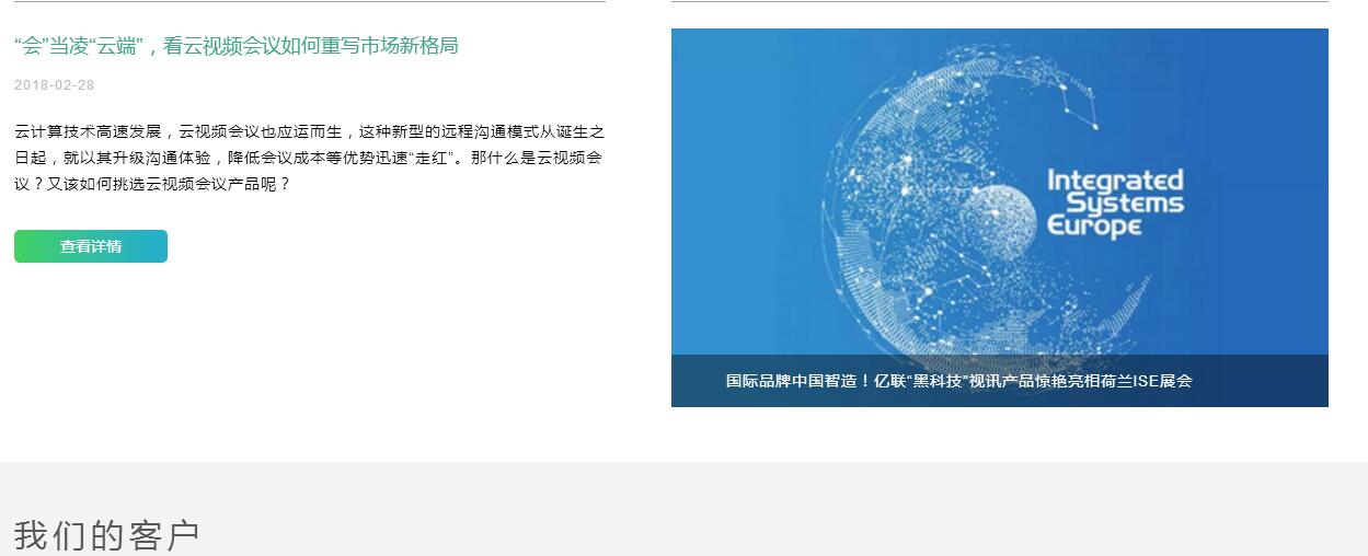 Project Description 厦门亿联网络技术股份有限公司(股票代码:300628)成立于2001年,是全球领先的统一通信解决方案提供商,主营视频会议和语音通信方案,坚持自主研发创新,致力于使沟通更简单、更高效。亿联网络在全球100多个国家提供音视频与协作等高品质网络通信产品,协助用户提升办公效率和竞争力。亿联网络SIP话机市场占有率为中国第一、全球第二。 Official website address 赣州http://www.yealink.com.cn I want to share