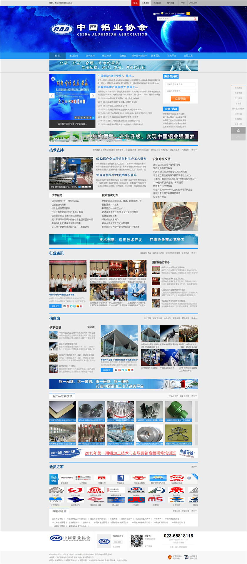 Project Description 中国铝业协会是由中国国内主要从事铝合金铸造、板、带、箔、管、棒、型材、锻件等企业组成的行业协会组织,协会由国内具有一定规模和影响力的企业发起,已有三百多家会员企业,目前还有很多企业踊跃希望加入,协会现有会员企业年销售额1000多亿元人民币,协会会员企业分布在国内华东、华南、西南、环渤海、东北、胶东半岛等中国经济活跃地区;产品涵盖航空航天、兵器装... Official website address 赣州http://www.caa2014.com I want to share